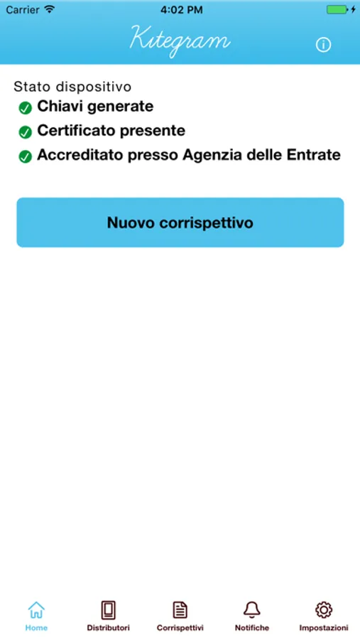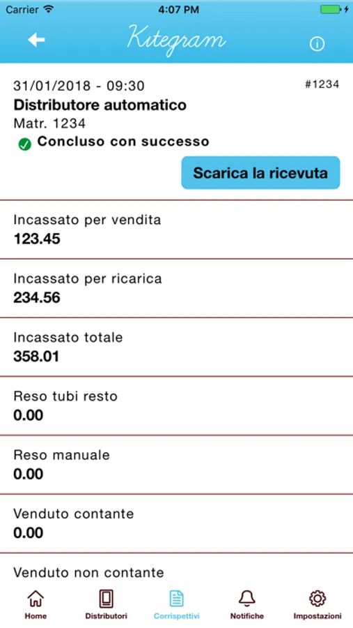 Grazie all'app Kitegram potrete facilmente assolvere alle prescrizioni dettate dall'Agenzia delle Entrate in merito all'invio telematico dei corrispettivi, inviando il corrispettivo delle vostre vending-machine in maniera semplice e intuitiva.