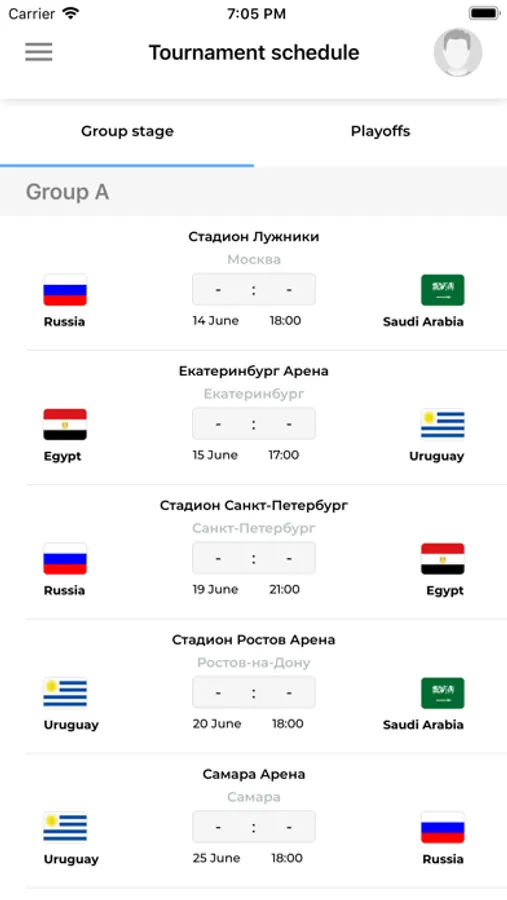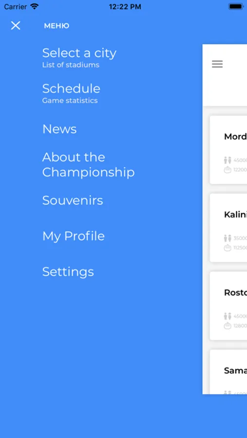 In the application there are stadiums of the cities: Kaliningrad, Volgograd,