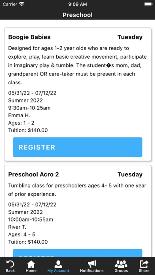 - Have a class in mind? Search by class, level, day, and time. You can register or even put yourself on a wait list.