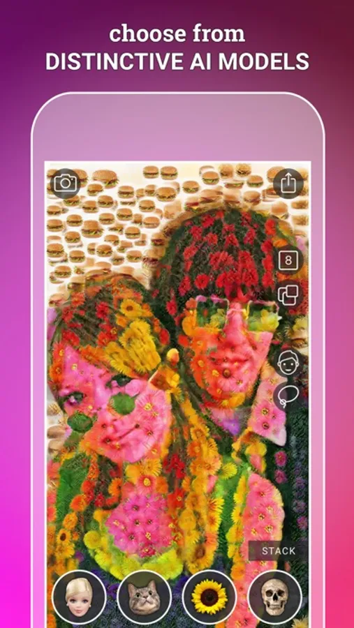 Genmo (short for Generative Mosaic) is an AI-powered app that recreates any photo or video using an entirely separate set of images. Take a picture or video, select a dataset to render it with, and get your recreated piece back in seconds. The new clip is completely generated by our own neural network. From there, try using the selection tools and stacking your creative moves. The possibilities are wide open!