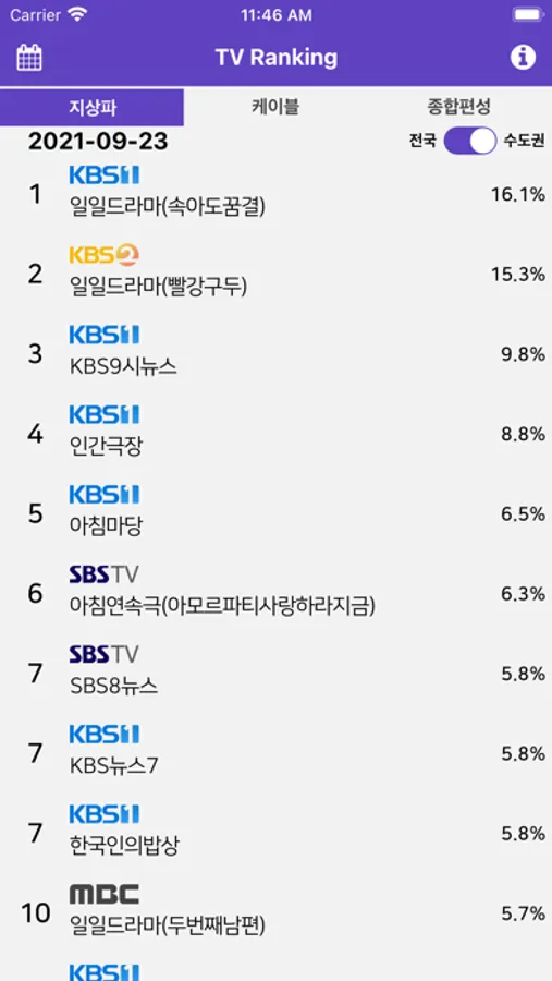 * 이 앱에서 제공하는 시청률 정보는 Nielsen Korea에서 발표하는 내용입니다.