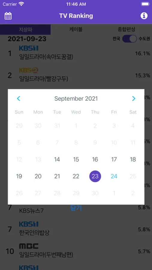 어제 방송된 TV 프로그램의 시청률이 궁금하세요?