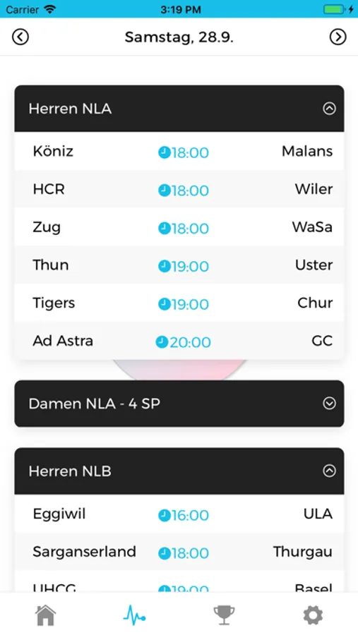 Alle Meisterschaft-Spiele aller Ligen der Schweiz und alle Cup Partien (Kleinfeld und Grossfeld) werden unterstützt. Zudem sind die offiziellen Statistiken zu Spielern verfügbar.