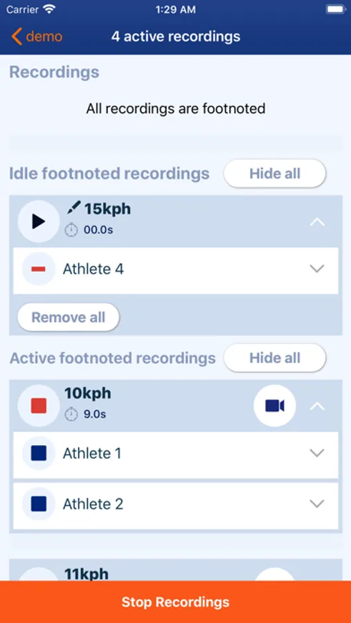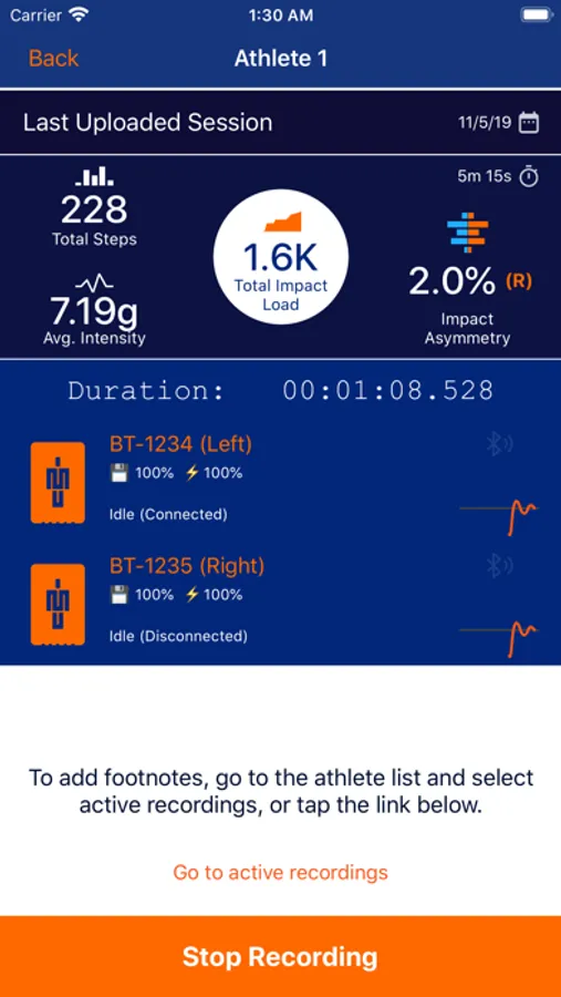 With IMU Step iOS, you can select the athlete who is training, add contextual information on their session, and view live data on an Apple device streamed directly from the sensors. Live metrics such as intensity are calculated and displayed in real-time, alongside the ability to record and save video footage of your session. You can also download data recorded by the sensors using IMU Step Desktop for PC and Mac for analysis via the IMU Step online dashboard.