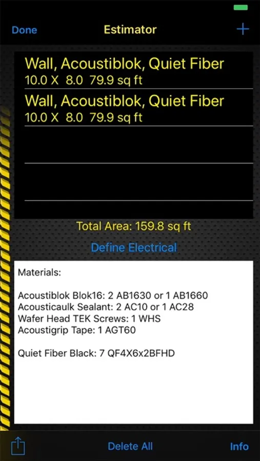 Create an estimate for our Blok16 and Blok32 sound isolation material, as well as our QuietFiber, sound absorbing material and Acoustiblok Wallcover, a post construction sound dampening product.
