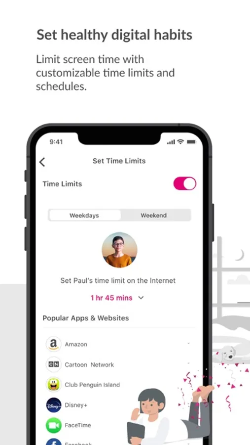 Set time limits for your kids, pause Internet access, or give screen time as a reward