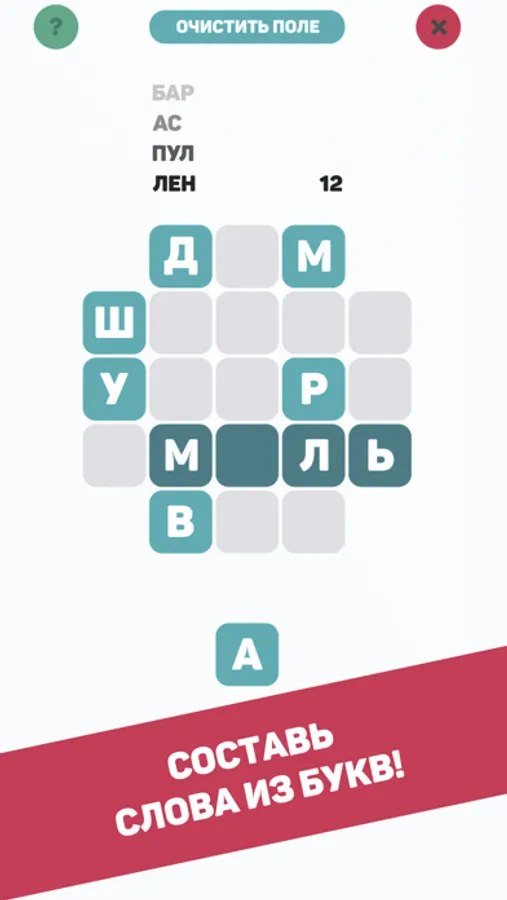 В вашем распоряжении игровое поле. Задача простая, но увлекательная — вам необходимо поместить блоки с буквами на игровое поле таким образом, чтобы из блоков собирались слова. Вы можете помещать блок на любую не занятую клетку игрового поля.