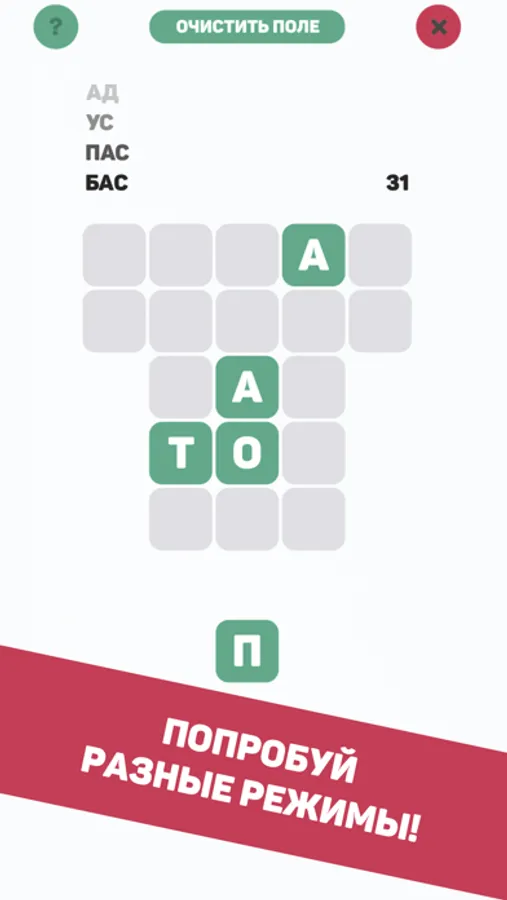 В разных режимах разные условия: в классическом режиме вы ничем не ограничены и можете собирать слова до тех пор, пока не закончатся клетки на игровом поле.