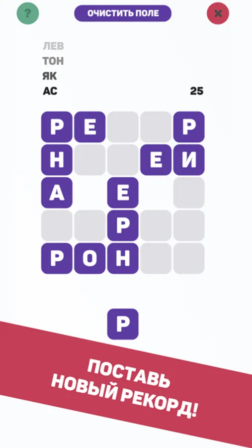 В режиме «Блиц» вы ограничены 60 секундами на сбор слов, но в то же время, за каждое собранное слово вам начисляется дополнительное время.
