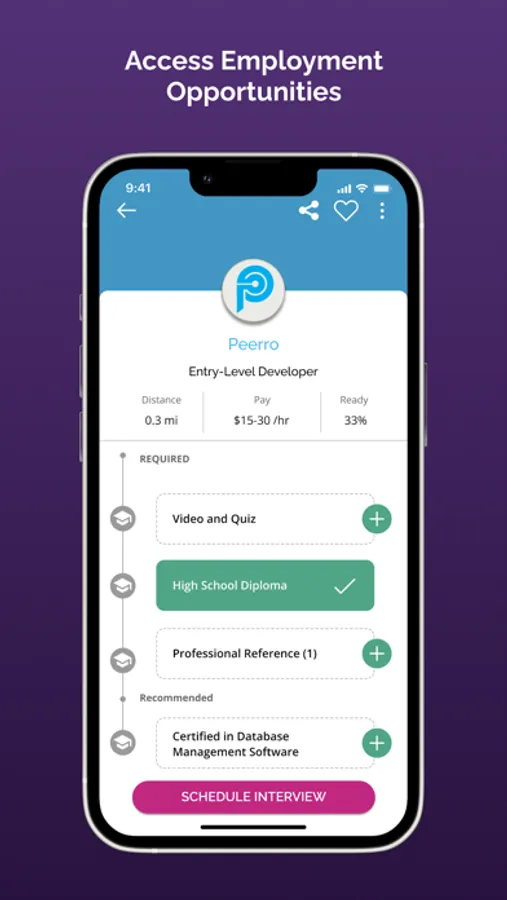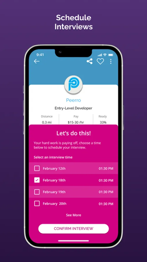 Download the Peerro app today to start your pathway to success! Job seekers are able to schedule an interview directly from the app, so waiting for a response from the employer is a thing of the past. Peerro is a great platform for youth entering the workforce.