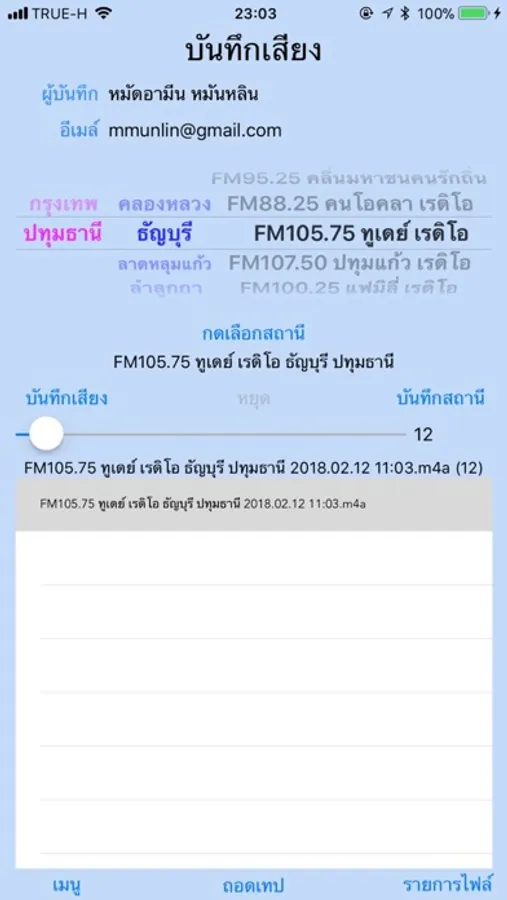 เมื่อบันทึกเสร็จ สามารถเลือกสถานีที่จะบันทึกได้จากรายการสถานีทั้งหมด เพื่อทําการถอดเทปเสียงเป็นไฟล์ข้อความและส่งเมล์ไฟล์เสียงและไฟล์ข้อความไปยังผู้ดูแลระบบ