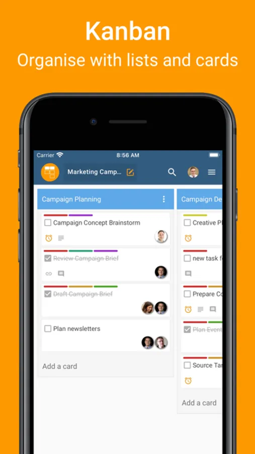 Huddo Boards is your visual and collaborative real-time task and project management app. Add your tasks to a board, assign members, add comments and descriptions, files and more. Customize your board by flipping between Board (kanban, sticky-note), MindMap (brainstorm) and Timeline (gantt) views that help you and your team visualize tasks and get more done.