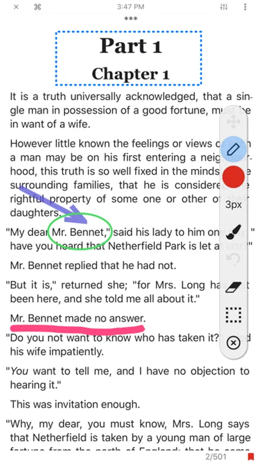• Drawn annotations in any ebook (Apple Pencil support and just by touching).