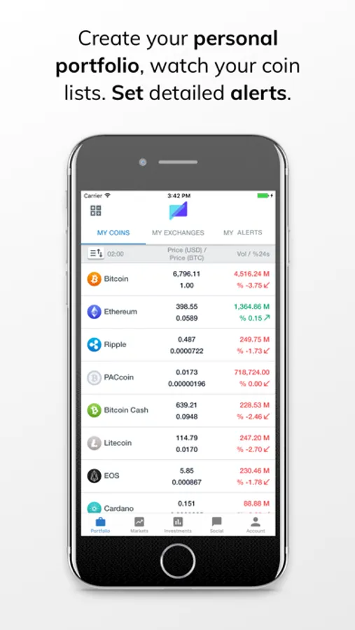 ● Add desired exchange pairs and coins to your portfolio and provide quick access as soon as you open the application.