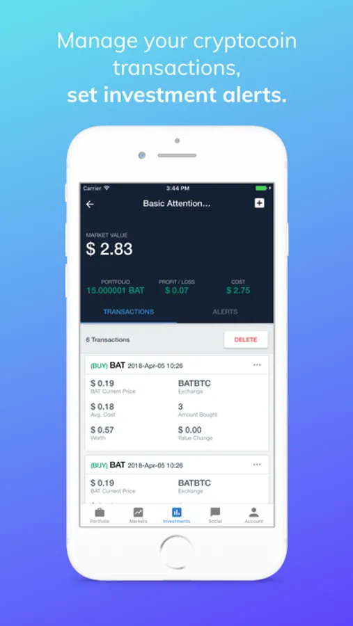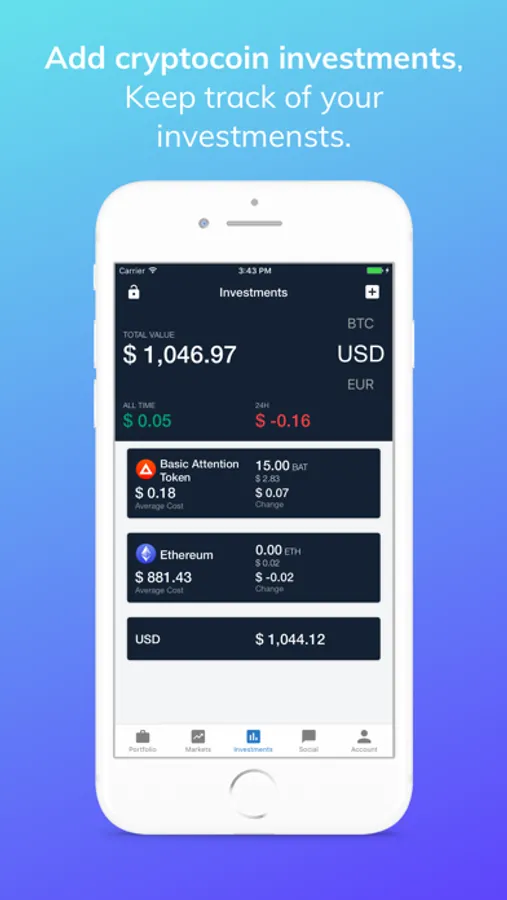 ● Track your profits and losses of your different crypto investments in one place with the investment page.