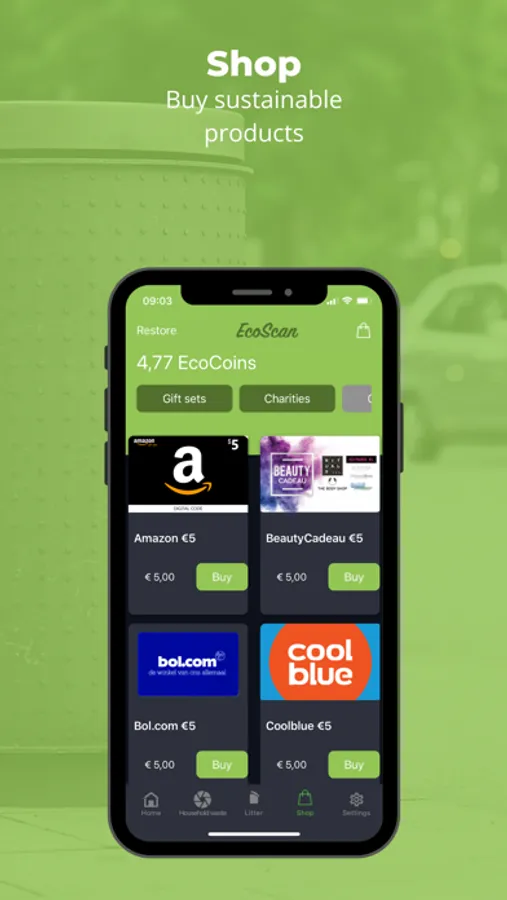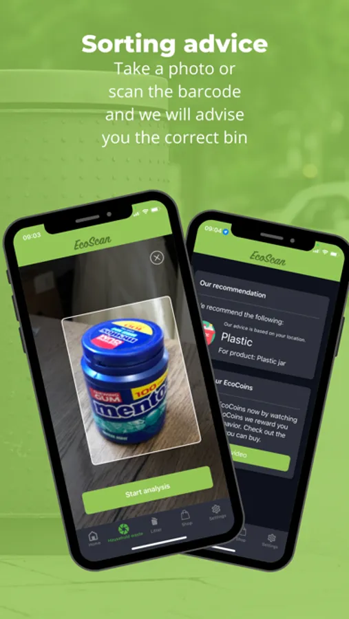 Earn and redeem EcoCoins: Every correctly sorted waste item and completed scavenger hunt earns you EcoCoins, which can be redeemed in the EcoScan shop for products that generate less waste. Together, we encourage a sustainable world.