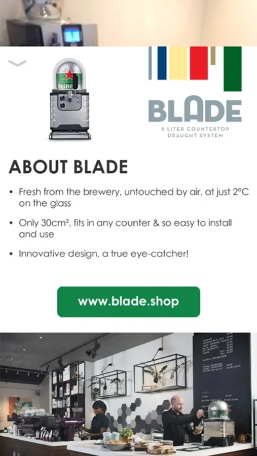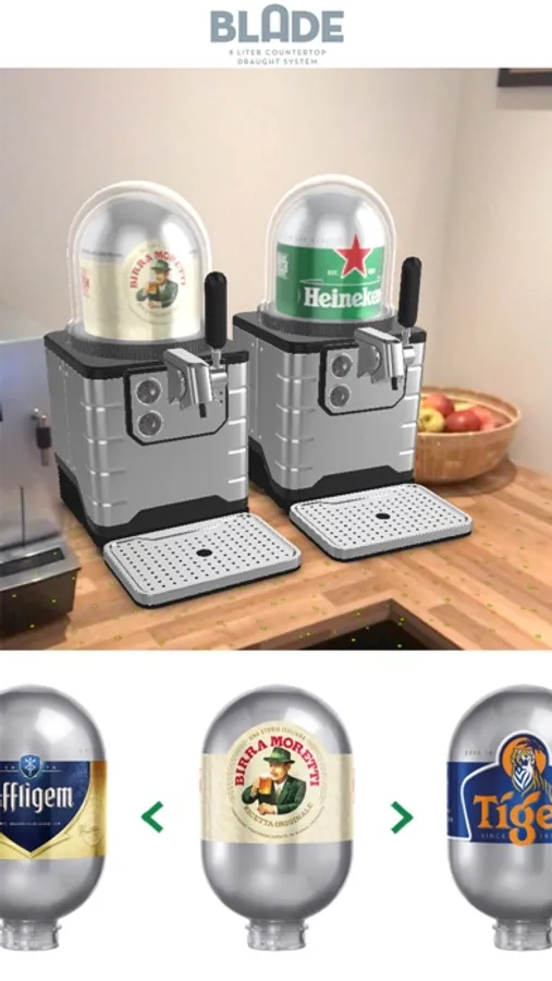 Blade® is a revolutionary professional draught beer system. This App will show you how Blade looks like in your outlet.