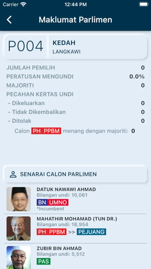 Malaysian GE application that provides complete statistics / information on general election (GE), state election (PRN), by-election (PRK) in Malaysia starting in 1955 until GE14 in 2018. You can get information on parliamentary constituencies, DUN and candidate information along with the complete results of the general election. In addition, by-election information is also provided from time to time.