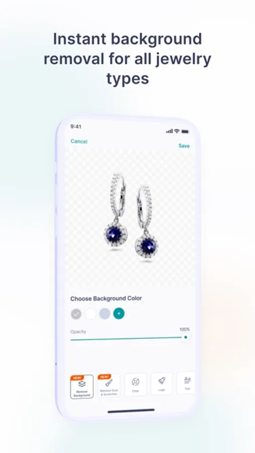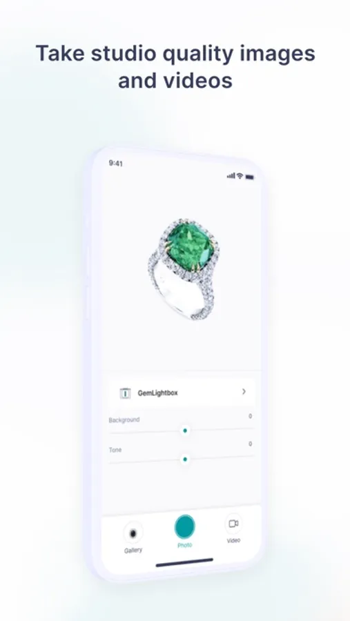 2. Take studio quality images; tap to focus on your item and control the brightness using our brightness bar. The brightness bar is made for jewelry and helps achieve a complete white background.
