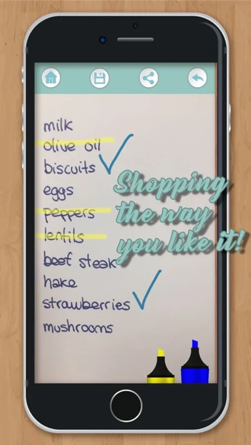 - Take a picture of a ready-made shopping list or upload from your gallery and choose between our pencil or highlighter to organize your checklist! Draw on your photo!