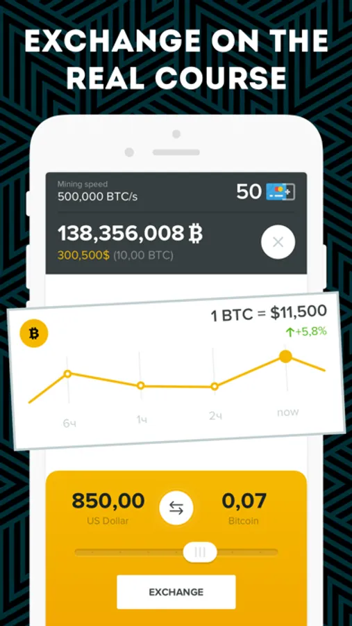 Tap to get your luck and get accelerated Bitcoin mining. Ask for help from hackers and they will double the amount of Bitcoin earned per minute.