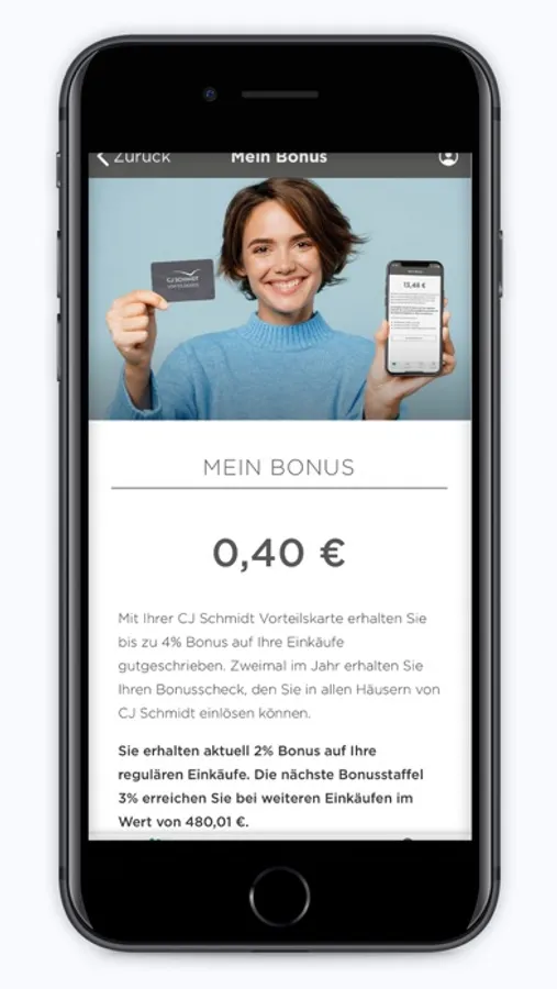 Mit der CJ Schmidt App haben Sie Ihre digitale Kundenkarte immer dabei. Ihre Vorteile auf einen Blick: