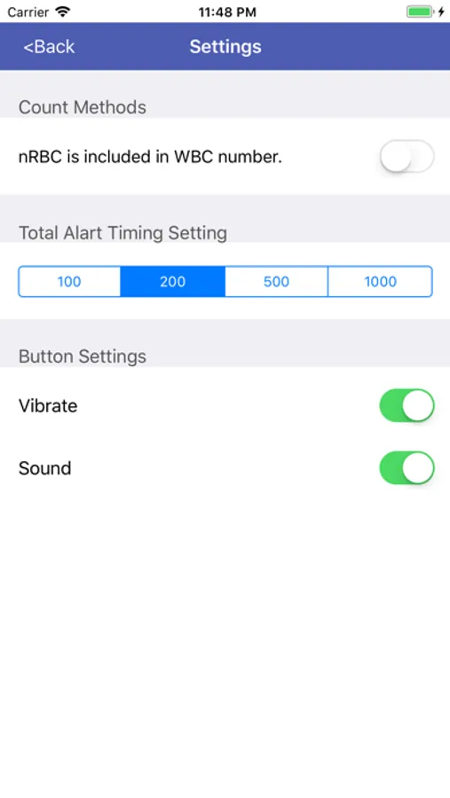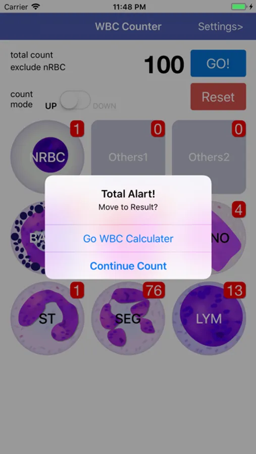 - pop-up alert 100, 200, 500, 1000 cells count