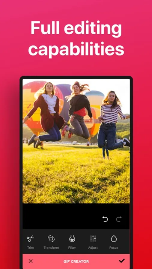 Unlike other apps you might find, GIF Maker has NO ads and allows you to create unlimited GIFs for free!