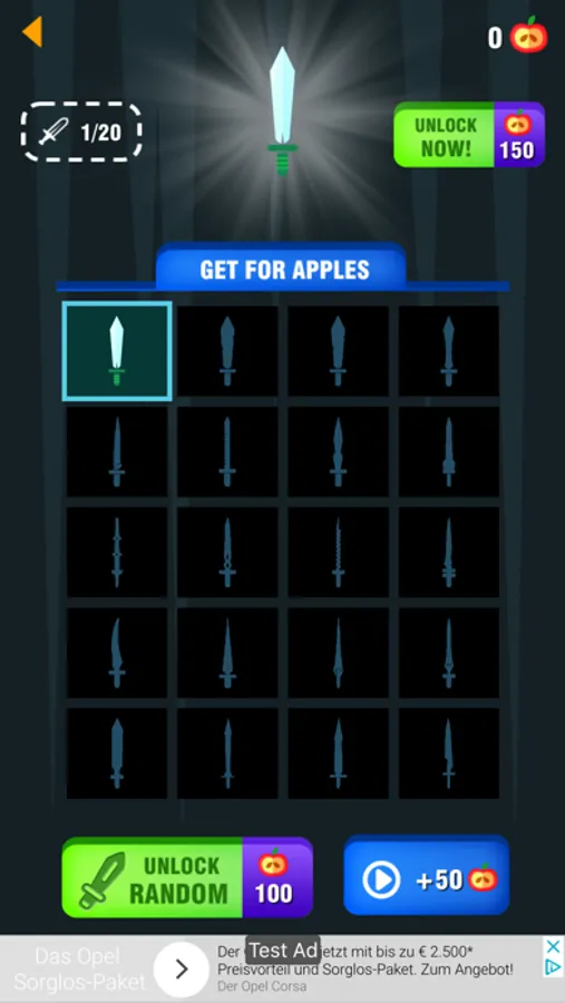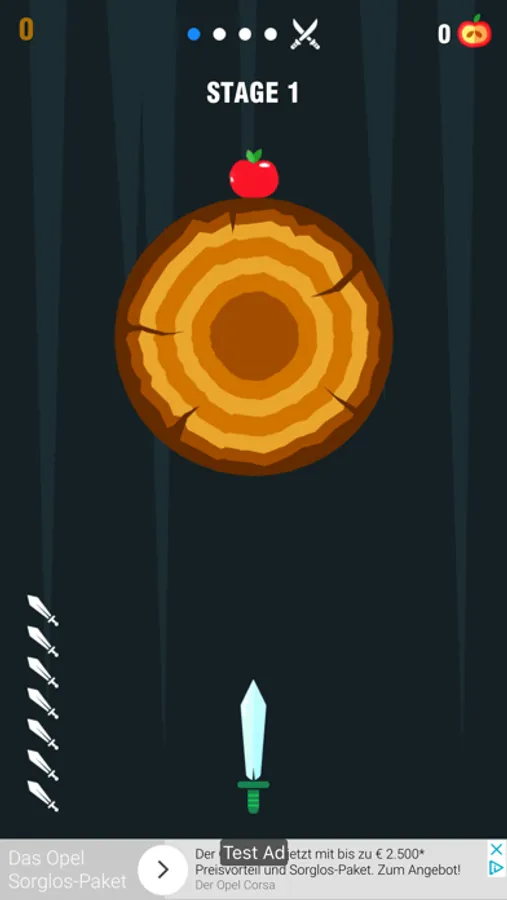 Throw the knifes into the logs to break them. Slash the apples and unlock new knifes. Each 5th stage is defended by a boss – beat them to get exclusive knives!
