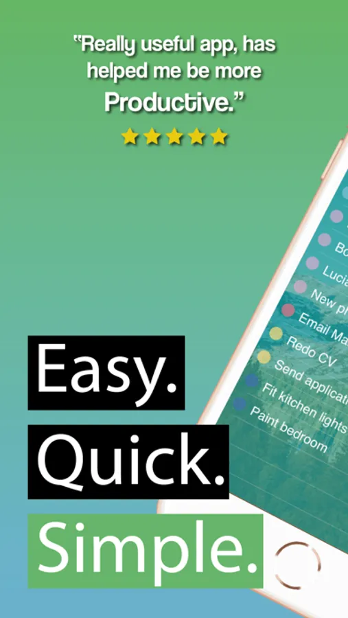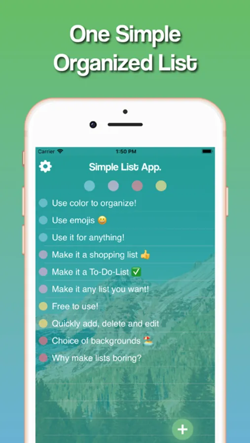 Clear and simple list design. Organize your items on your simple list with colors. The Simple List App is a single screen list, no folders, designed for quick and easy use! Simple List App can be used for any of your simple list needs!