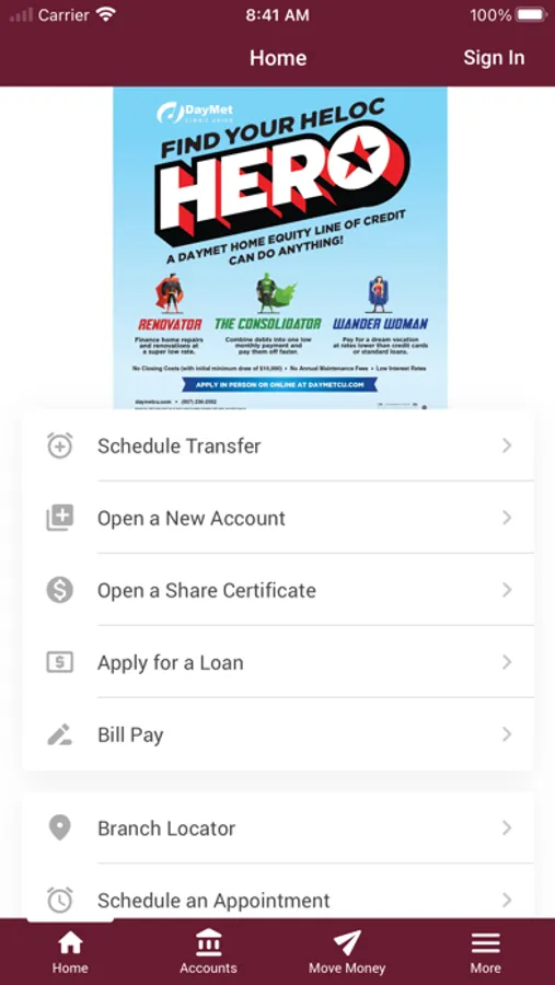 DayMet Credit Union Mobile provides members convenient access to our website, mobile banking, branch and contact information.