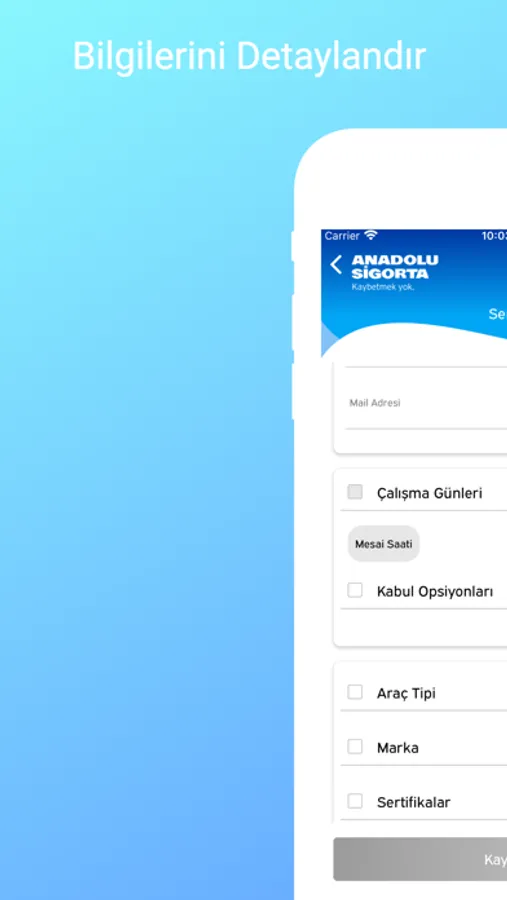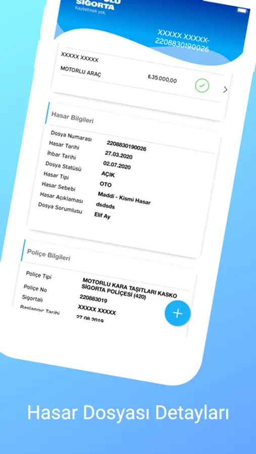 Oto branşı için hızlı ve etkin bir şekilde hasar dosyası açabilirsiniz.
