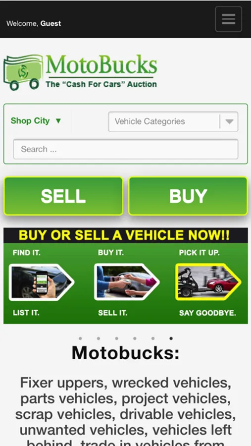 Motobucks is a local 24 hour online vehicle auction where sellers get more and buyers pay less. It features fixer uppers, wrecked vehicles, parts vehicles, project vehicles, scrap vehicles, drivable vehicles, unwanted vehicles, vehicles left behind, trade in vehicles from dealerships, Any vehicle in any condition!!