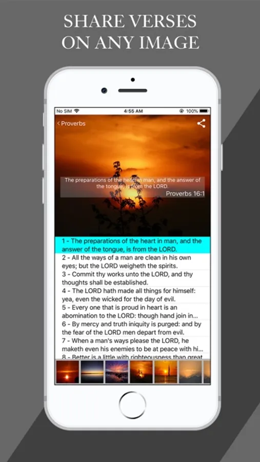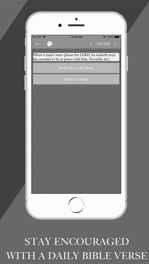 Each morning a notification is sent to the user which presents you with an encouraging Bible verse that can read and share with friends on social media.