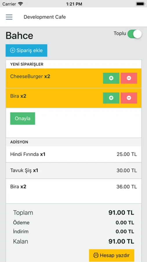 Restoran, cafe ve bar v.b. işletmeler için tasarlandı. Masa başından aldığınız siparişleri anında mutfağa göndermek, masa birleştirmek/ayırmak, adisyon fişi yazdırmak ve daha fazlası parmaklarınızın ucunda.