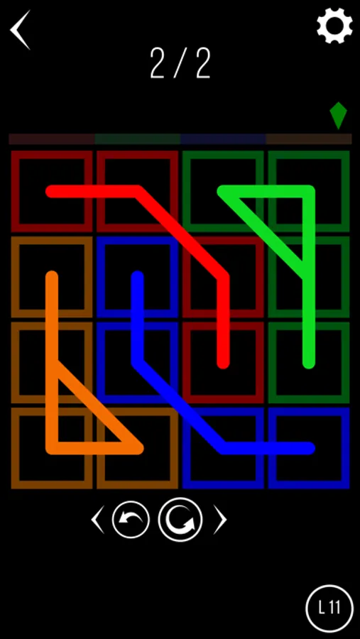 Drag squares up, down, left, and right to switch colors and connect all the lines. Lines connect when any two similar colored blocks are adjacent or diagonal to each other. Connect all the colors to solve each puzzle!
