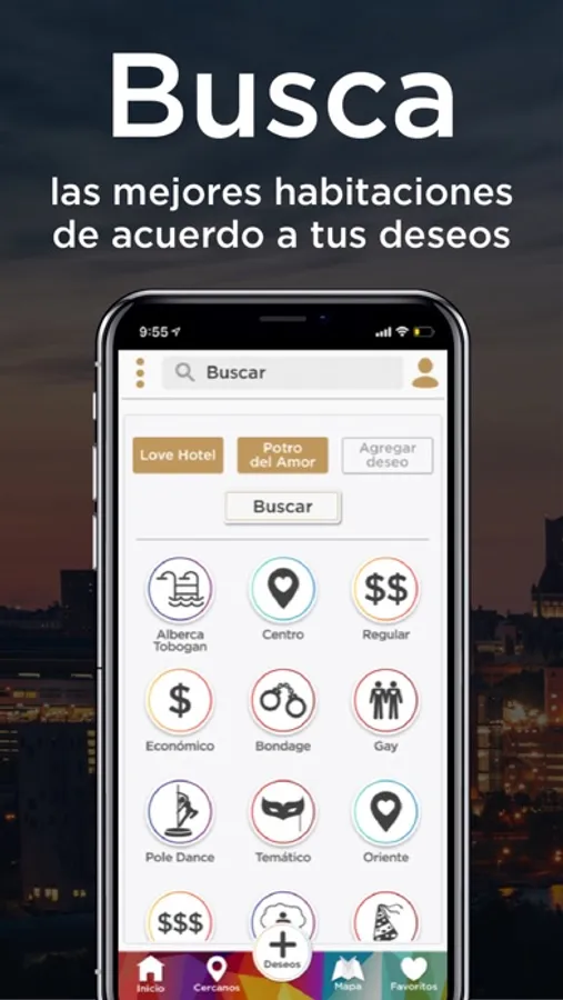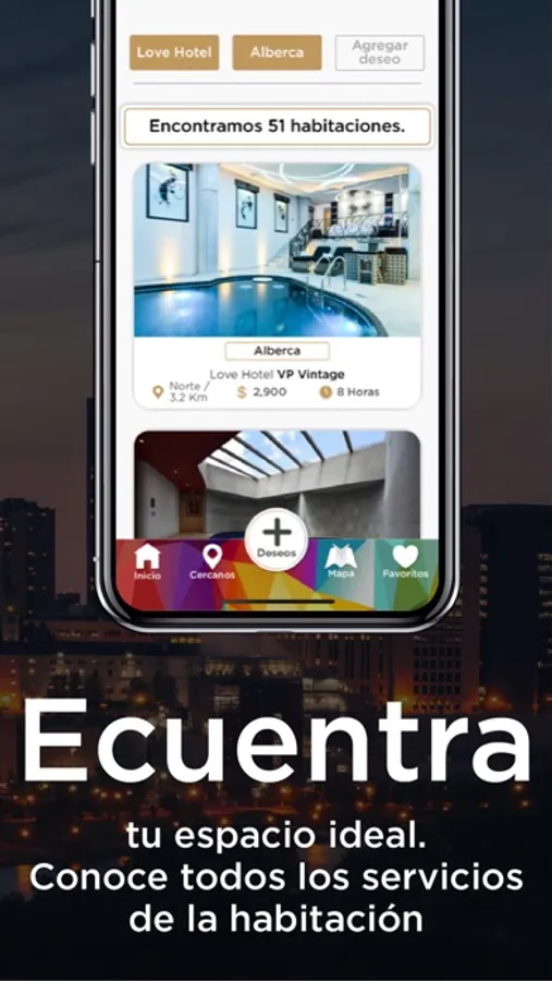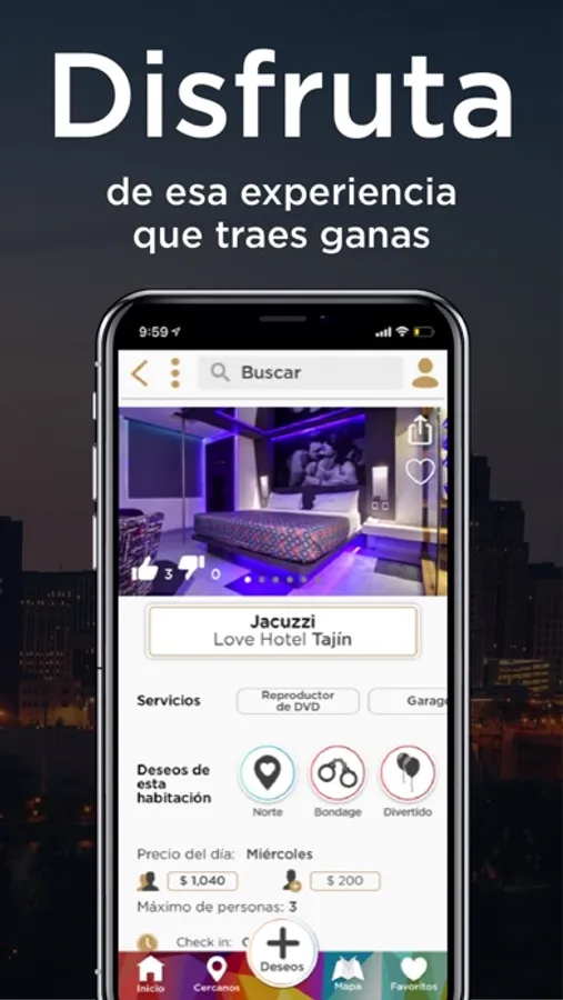 Busca, encuentra y disfruta las mejores habitaciones de Moteles y Love Hotels (Moteles Lujosos). Descubre de una manera fácil y divertida los espacios ideales de acuerdo a tu preferencia, que son tus "Deseos":