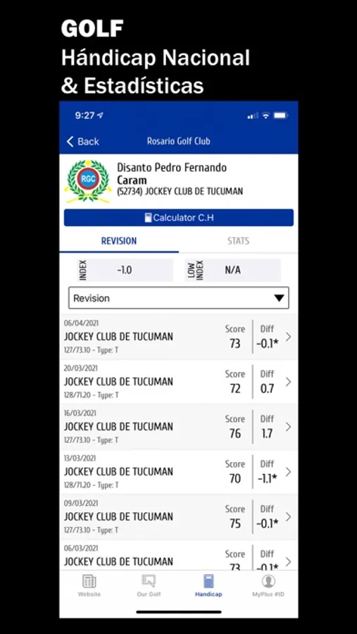- Conexion con el hándicap de la Asociacion Nacional de Golf