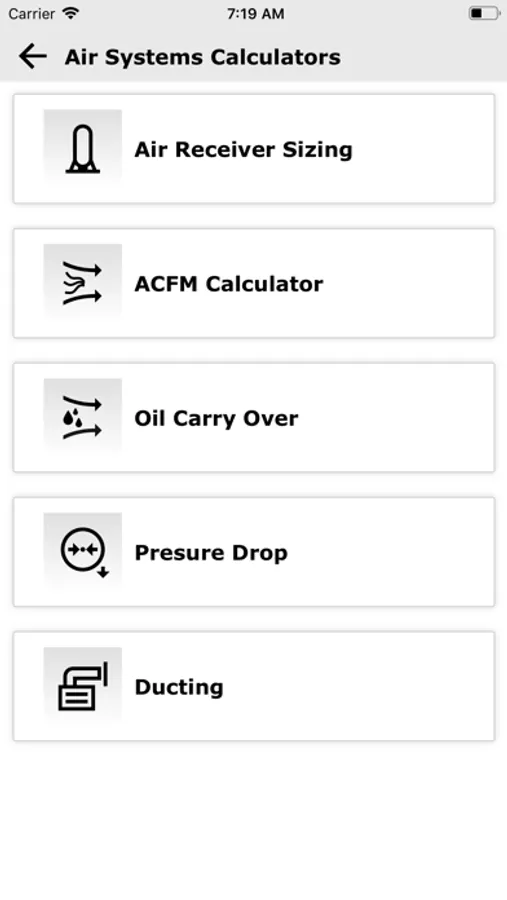 The APP enables right compressor selection based on technical considerations like Operating Pressure, Air Flow required and so on