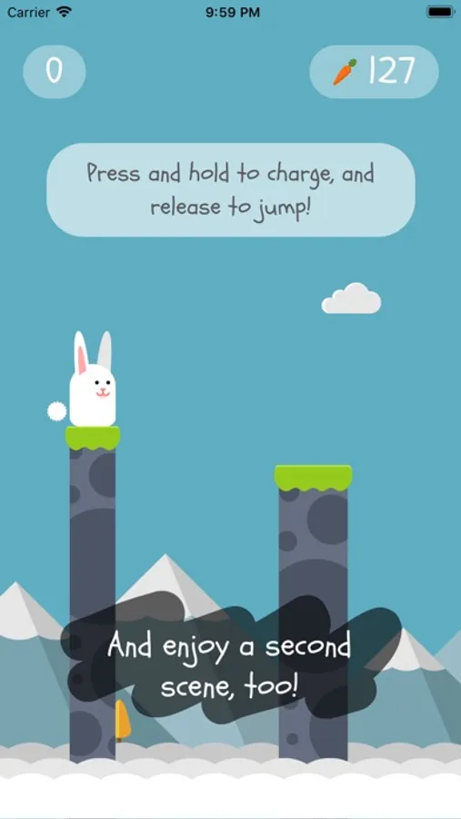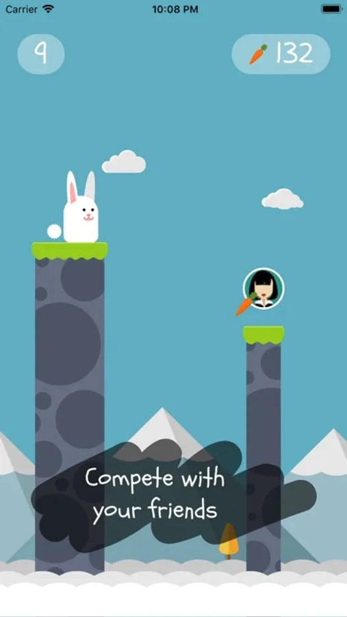 The rules are simple: press and hold on the screen to charge, and release to jump. Aim carefully, fly past carrots to collect them, and land at the center of the next block platform to get a special bonus. Meet and beat your friends on the way, and if your hands slipped, you can always spend some carrots to save your character from the falling.
