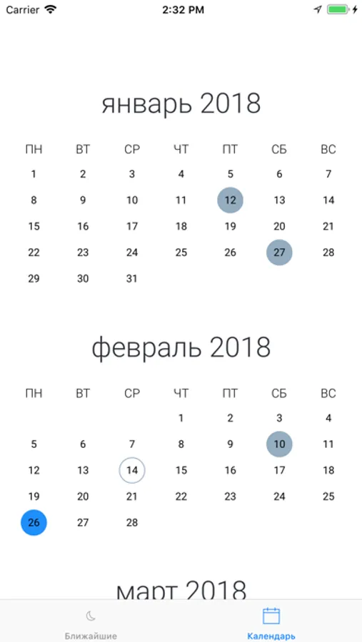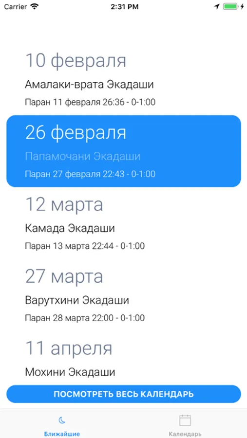 Календарь Экадаши для отслеживания и напоминания о предстоящих постах.