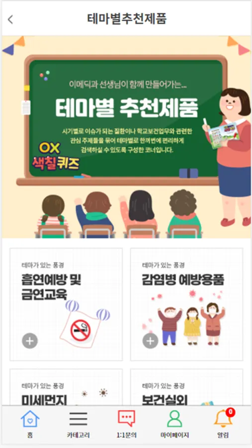 커뮤니티, 온라인 보건 강의, 1 : 1 문의, 제품 정보를 한눈에!