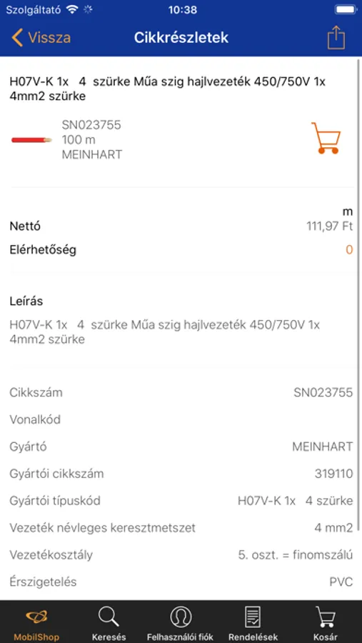 - Online internetkapcsolat megléte esetén készletmennyiségek, vevőre szabott árak is elérhetők, valamint elküldhető a megrendelés