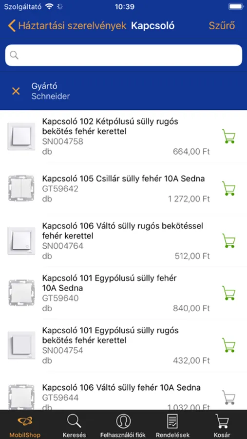 - Gyors termékkeresés keresőszavak és szűrések használatával