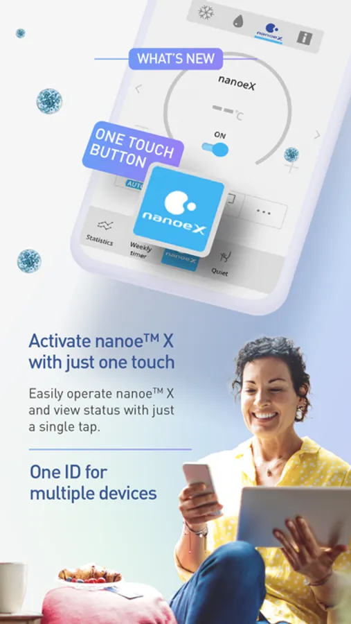 - Turn nanoe™ on or off easily with One-touch nanoe™ button on the main screen