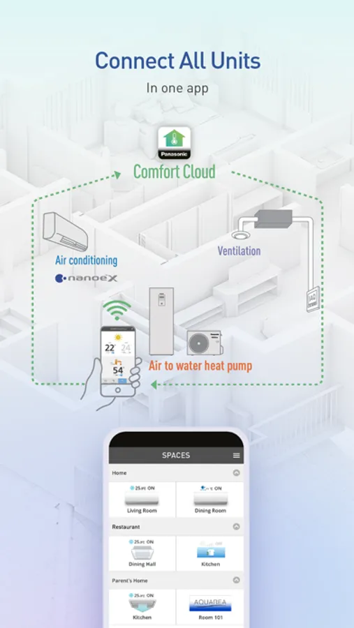 Panasonic Comfort Cloud allows you to control and monitor your Panasonic air conditioning and ventilation units from anywhere using your smartphone.