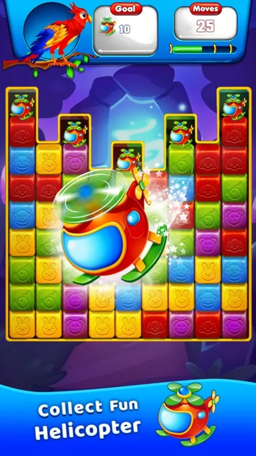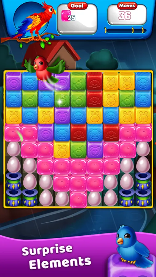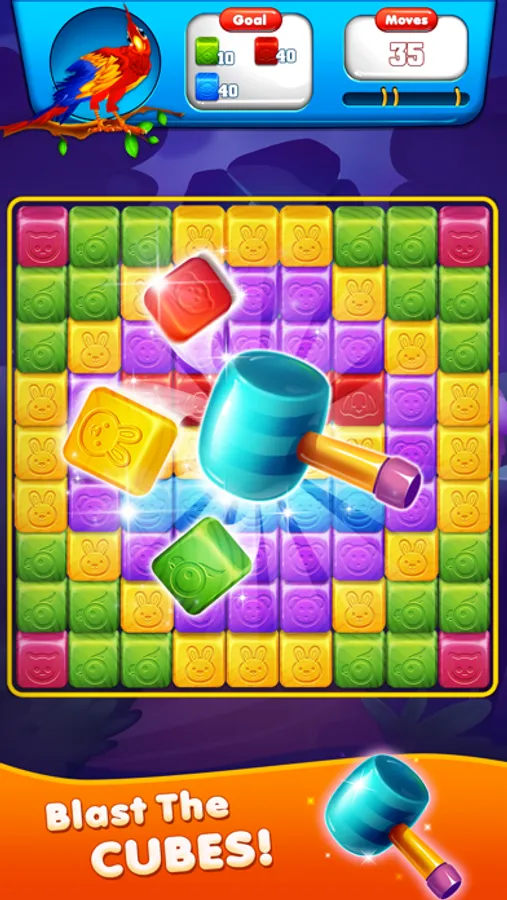 Play your favourite blast games with plenty of levels with surprise elements like hatching an egg, bird in cage etc., if you face the obstacle in matching three cube, blast them with the rockets, TNT and other boosters like the hammer, vacuum, truck and bucket, to reduce the number of moves and achieve the target.
