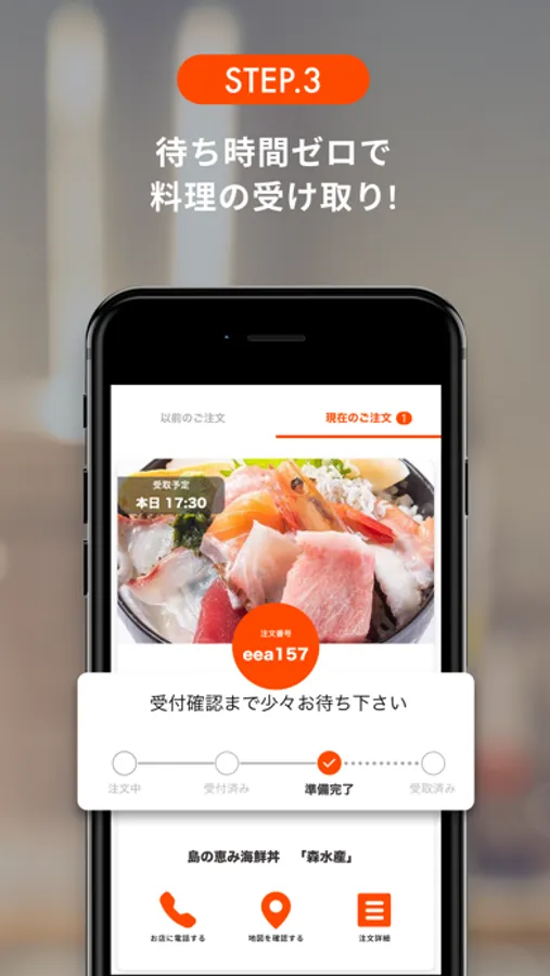 現在地周辺から簡単にお店が見つけることができ、受け取りたい時間を指定し、アプリ内でラクラク簡単に事前注文・決済を済ませることができます。お客様が料理を受け取るまでPicksはテイクアウト(お持ち帰り)をサポートいたします!