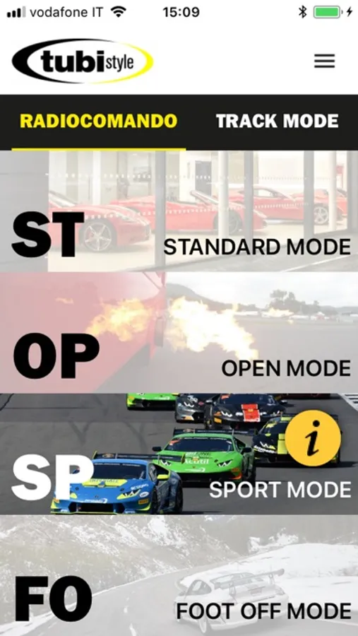 The Tubi Sound Control App enables to control the Tubi Style unit for the control of the exhaust bypass valves, whether pneumatic or electric. The APP was conceived in the same spirit as all Tubi Style mufflers. The technology comes straight from the world of racing, while components are compliant with quality checks that allow Tubi Style to be the supplier of the top sports car brands in the world.