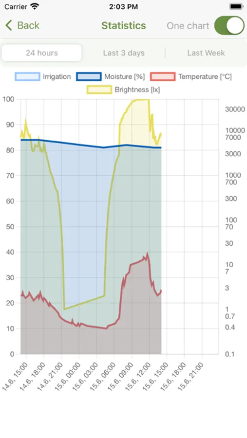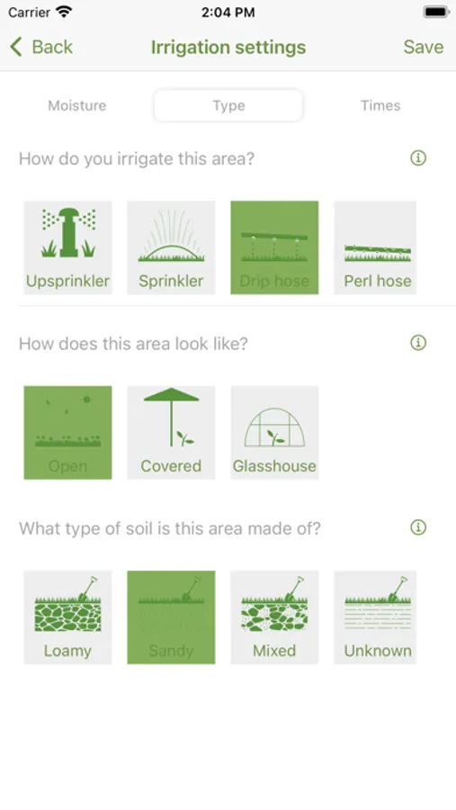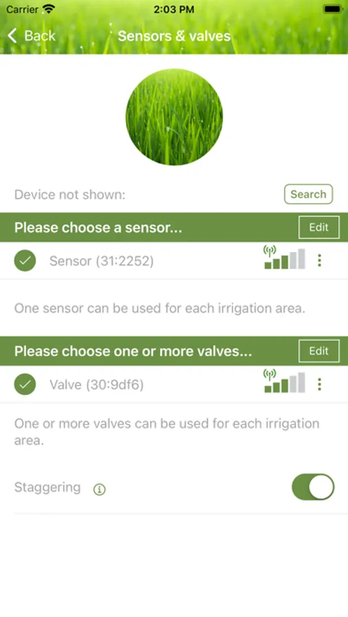 Create one or more watering areas with sensors and valves in the app for your garden. The sensors measure soil moisture, air temperature and brightness.